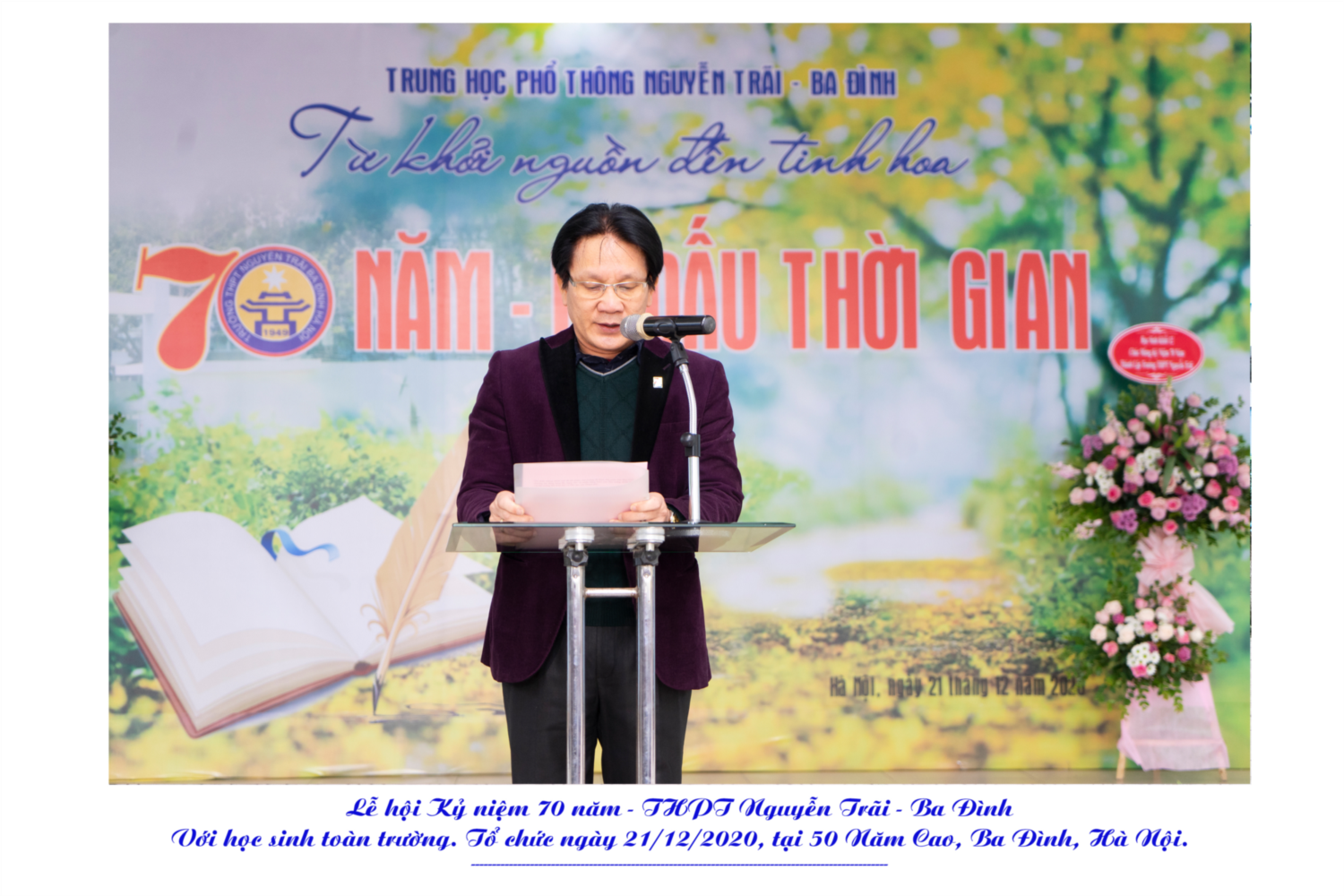 Ngày 21/12/2020, tại sân trường (số 50 Nam Cao, Giảng Võ, Ba Đình, Hà Nội), lễ Kỷ niệm 70 năm thành lập trường THPT Nguyễn Trãi - Ba Đình (1950 - 2020) đã được tổ chức trọng thể với sự tham gia của 1923 học sinh đang học tại trường. Với chủ đề : " 70 năm in dấu thời gian" , chương trình của buổi lễ đã được chuẩn bị công phu, chu đáo và hấp dẫn; Kết nối đầy nhân văn giữa quá khứ, hiện tại và tương lai. Buổi lễ đã diễn ra trong không khí trang trọng, giàu cảm xúc và thành công tốt đẹp; Đem đến cho cả thầy và trò niềm tự hào về mái trường thân thương với biết bao thăng trầm và vinh quang trong suốt 70 năm xây dựng, phát triển.